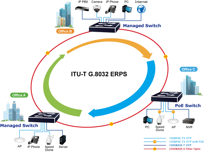 GS-4210-16P4C обладает высокой способностью к быстрому самовосстановлению, предотвращая сбои и внешние вторжения. Он использует технологию ITU-T G.8032 ERPS (Ethernet Ring Protection Switching) в автоматизированных сетях заказчика для повышения надежности и времени безотказной работы системы. Применяя стандарт IEEE 802.3at Power over Ethernet, GS-4210-16P4C может напрямую подключаться к любым конечным узлам IEEE 802.3at, таким как PTZ-камеры (с возможностью панорамирования, наклона и масштабирования) и скоростные купольные камеры. GS-4210-16P4C позволяет легко создать систему централизованного управления беспроводной точкой доступа/IP-камерой/VoIP-системой для малых и средних предприятий и рабочих групп в компаниях с высокодоступной сетевой инфраструктурой.