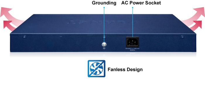 Благодаря использованию новейших технологий производства чипов и экологичности, GS-4210-24T2S значительно снижает энергопотребление благодаря безвентиляторной и бесшумной конструкции в сочетании с эффективным кулером. Таким образом, GS-4210-24T2S способен стабильно и бесшумно работать в любых условиях без ущерба для производительности.