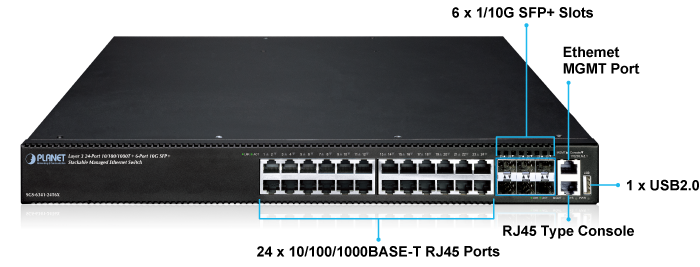 PLANET SGS-6341-24T6X — это совершенно новый управляемый гигабитный коммутатор уровня 3 с возможностью стекирования и поддержкой восходящего канала 10 Гбит/с, предназначенный для различных типов сетевых приложений и гибкого развертывания. SGS-6341-24T6X оснащен 24 портами 10/100/1000BASE-T RJ45 и 6 портами 1G/10GBASE-X SFP+ с коммутационной матрицей 168 Гбит/с, выполненными в прочном корпусе высотой 1U.