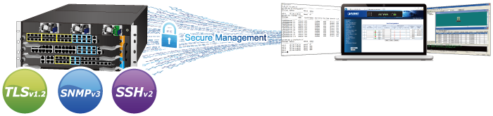 | Secure Management Interfaces | SSHv2, SSLv3 Maximum 8 sessions for SSH and Telnet connection | ||