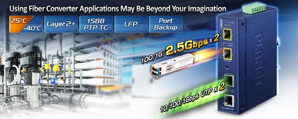 Серия PLANET IGT-900 обеспечивает полную гигабитную скорость порта. Он обеспечивает очень высокую надежность и безопасность, обеспечивая непрерывную работу в суровых условиях, таких как транспорт, заводы, на открытом воздухе и в местах, где могут наблюдаться низкие или высокие температуры. Кроме того, серия IGT-900 также совместима с трансиверами SFP 100 Мбит/с, 1000 Мбит/с и 2500 Мбит/с, что обеспечивает надежное, стабильное соединение на больших расстояниях и гибкое развертывание промышленных сетей.