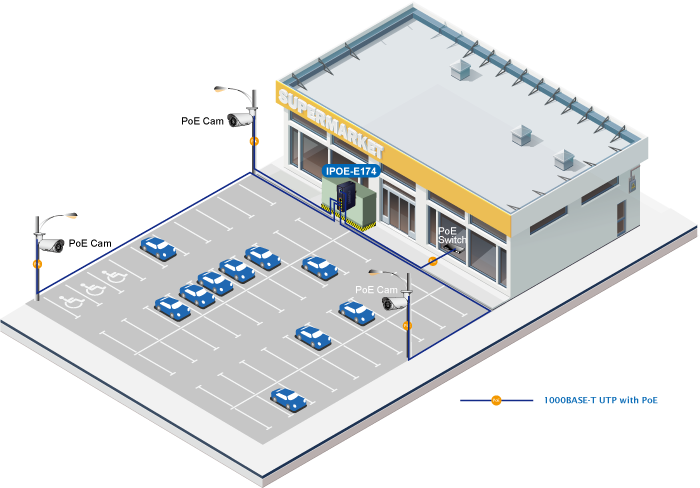 Достаточно ли длины 100-метрового кабеля для широкого спектра систем IP-наблюдения? Ответ, конечно, нет. Для достижения преимуществ IP-наблюдения, когда IP-камеры потребуется установить большом расстоянии, PLANET IPOE-E174 расширит уже настроенную сеть, не беспокоясь об ограничении длины кабеля.