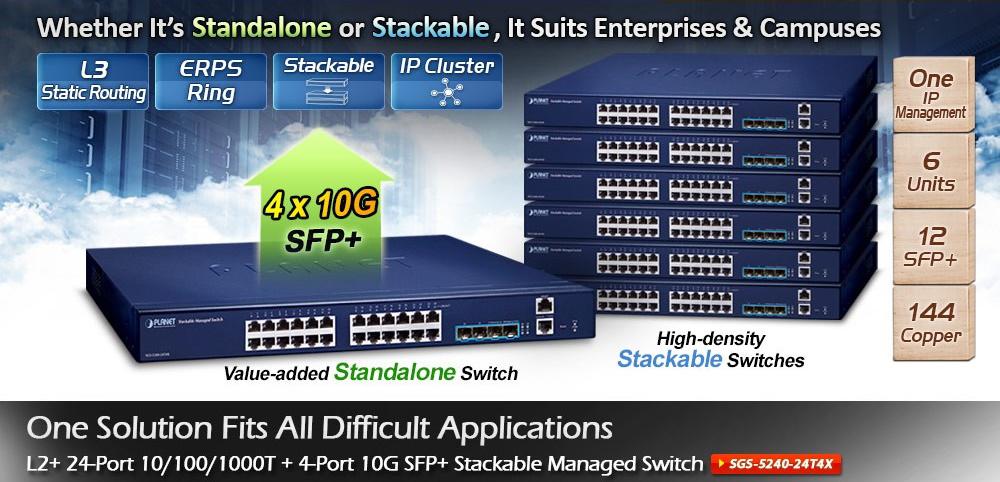 Серия SGS-5240, позиционируемая как коммутатор уровня распределения или агрегации для больших сетей, поддерживает функцию стекирования IP, которая помогает сетевым менеджерам легко настраивать до 16 коммутаторов одной серии через один IP-адрес вместо подключения и настройки каждого устройства по отдельности. один. Технология IP-стекинга группирует серию коммутаторов PLANET SGS-5240 вместе, чтобы обеспечить централизованное управление через одно устройство, независимо от физического местоположения или типа коммутатора, при условии, что они подключены к одной и той же локальной сети.