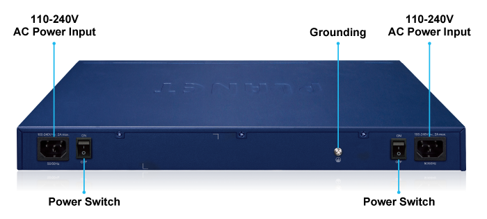 SGS-6310-48T6X оснащен двумя блоками питания переменного тока напряжением 100–240 В для резервной системы питания. Система резервного электропитания специально разработана для удовлетворения потребностей высокотехнологичных объектов, требующих высокой надежности электропитания.