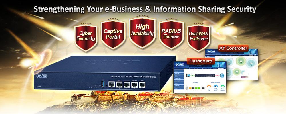 Инновации Интернета создали во всем мире огромные возможности для электронного бизнеса и обмена информацией. Для бизнеса стало важно уделять больше внимания вопросам сетевой безопасности. Потребность в информационной безопасности стала главной заботой предприятий. Чтобы удовлетворить этот спрос, PLANET выпустила VPN-маршрутизатор VR-300, универсальное устройство, которое поддерживает несколько основных категорий безопасности вашей сети: кибербезопасность, защита брандмауэра SPI, аудит политик (фильтрация контента, VPN-туннель). и фильтрация MAC/IP), контроллер AP, Captive Portal, RADIUS и простое управление (мастер настройки, DHCP-сервер и панель мониторинга). Кроме того, функции аварийного переключения двойной глобальной сети, балансировки исходящей нагрузки и высокой доступности могут повысить эффективность сети, а веб-интерфейс обеспечивает удобный и последовательный пользовательский интерфейс.