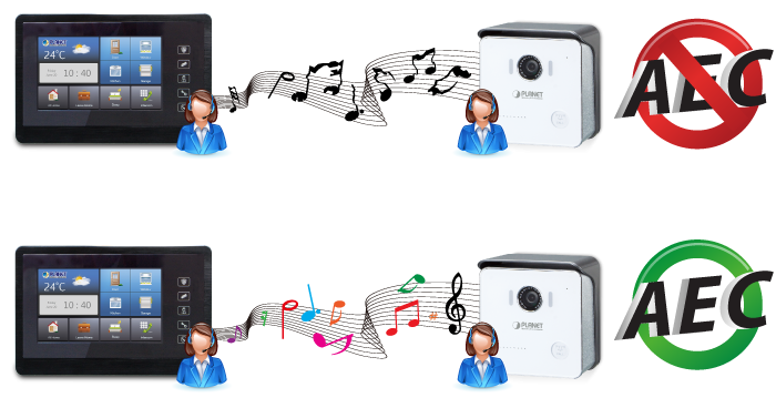 Ощутите кристально чистый звук PLANET в домофоне HDP-1100PT и видеодомофоне VTS-700P с сенсорным экраном SIP для помещений и PoE. Технология акустического эхоподавления (AEC) применяется в домофоне PLANET HDP-1100PT и видеодомофоне VTS-700P с сенсорным экраном и PoE для внутреннего использования с SIP для минимизации искажений звукового сигнала. Кроме того, благодаря подавлению эха вы почувствуете, что разговариваете с собеседником лицом к лицу, что гарантирует лучшее в своем классе качество звука.